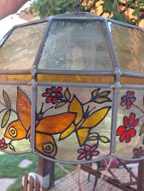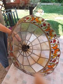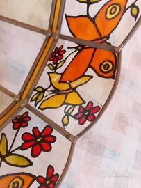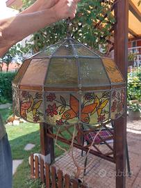 in vetro zigrinato e piombo con decorazione di Farfalle. Diametro di cm 47 h 32cm.