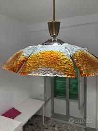 Raro e raffinato lampadario vintage attribuito a Carlo Nason, uno dei più importanti maestri vetrai di Murano, attivo dagli anni ’60 in collaborazione con l’azienda Mazzega.