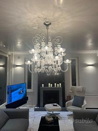 Lampadario a bracci in vetro soffiato e lavorato a mano in cristallo.