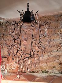 lampadario ikea in metallo nero con pendenti effetto cristallo