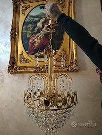 vendo lampadario ottone e cristallo originale 3 luci