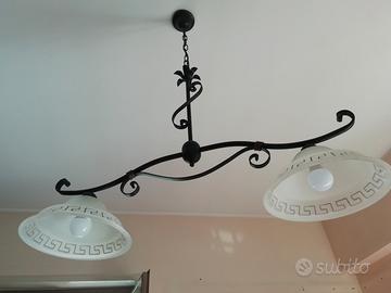 Lampadari in ferro battuto. Sono due: Uno con due bocce, e uno singolo io li ho messi per unico ambiente in cucina.