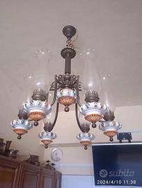 Vendo 2 Lampadari gemelli 6 luci anni 60/70 in ottone, porcellana capodimonte,e vetri in cristallo.