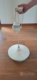 Lampadario in ceramica con saliscendi perfettamente funzionante, fascia decorata stile Vintage colorata verde acqua. Diametro 43cm. Fornito con piombi per il contrappeso.