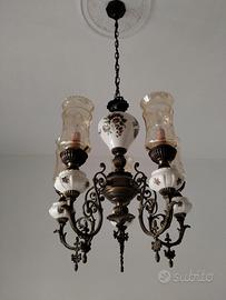 vendo lampadario in ceramica e metallo (ottone?) e vetro anni 60 in condizioni perfette. si accettano offerte congrue con il valore dell'oggetto