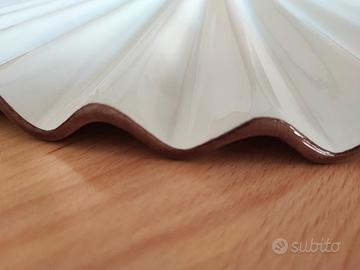vendo lampadario per ambienti rustici, due bracci, ferro battuto finitura bronzo spazzolato, decorato a mano, piccola fessura su il piatto come da foto. disponibile per la spedizione. ritiro a mano in zona
