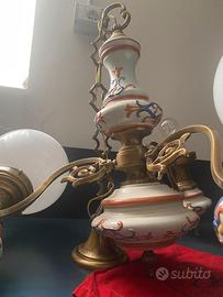 Bellissimo lampadario in ceramica a tre luci (un globo è mancante). Come da foto.