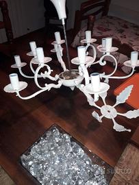 Lampadario chandelier ottone verniciato bianco con cristalli da assemblare 60€
