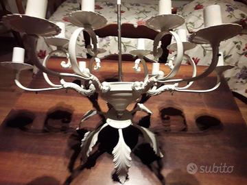Lampadario chandelier ottone verniciato bianco