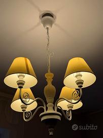 Vendo lampadario elegante a 5 luci con paralumi, acquistato in mobilificio di qualità (pagato circa 600 €). Design classico e raffinato, perfetto per: soggiorno sala da pranzo camera da letto ambienti eleganti Caratteristiche: 5 punti luce struttura bianca con bracci decorativi paralumi in tessuto luce calda e molto diffusa stile classico / provenzale Il lampadario è in ottime condizioni, completo e perfettamente funzionante. Vendita per cambio arredamento.