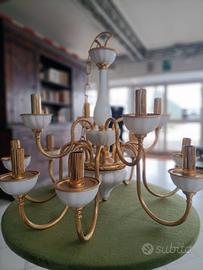 Lampadario vetro murano bianco e oro.