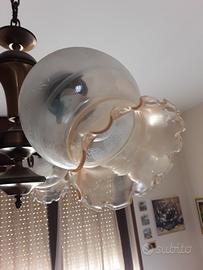 lampadario classico con catena color bronzo e 5 luci di vetro lavorato