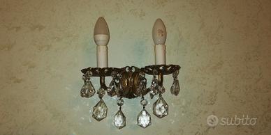 Lampadario classico anni 60 con gocce di vetro e due applique coordinate. Rifiniture color oro. Ottime condizioni Prezzo trattabile. Smontaggio a carico dell'acquirente.