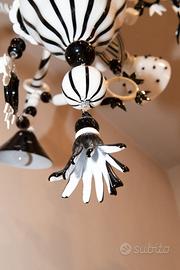 LAMPADARIO CLASSICO DE MAIO IN VETRO NERO E BIANCO MOLTO ORIGINALE CON OTTO BRACCETTI E 8 LAMPADINE