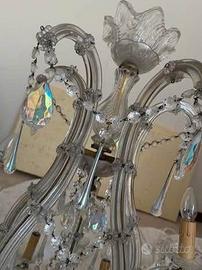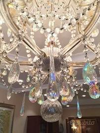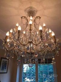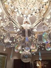 Lampadario classico di cristallo a sospensione con pendenti a gocce. Da salone. Molto scenografico. Misure: Altezza cm 70 Larghezza cm 80 con n. 16 lampadine a candela. Prezzo trattabile. Ritiro a domicilio.
