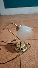 lampadario classico ottone brunito tre braccia con coppette vetro pesante. lampada ottone con paralume vetro