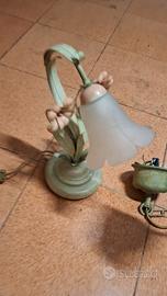 lampadario classico floreale ferro con coppette a fiore vetro, lampada coordinata. solo ritiro a mano