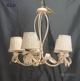 Noi di ALD proponiamo per te... Lampadario 5 luci dallo stile classico in ferro battuto e paralumi in stoffa. Realizzato dai nostri artigiani con materiali rigorosamente made in italy. Ideale per la tua camera da letto, una cameretta o un salone o dove meglio può arricchire il tuo ambiente.