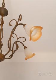 Vendo lampadario classico in ferro battuto con diffusori in vetro ambrato