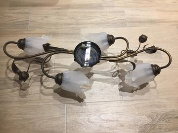 Struttura in metallo colore marrone e oro con diffusori in vetro colore bianco satinato (a forma di campanula, come da immagini).