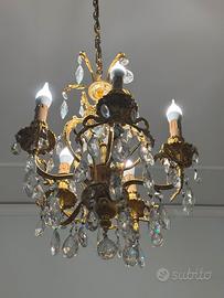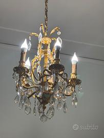 Vendo elegante lampadario classico in ottone dorato con pendenti in cristallo, 5 punti luce.
