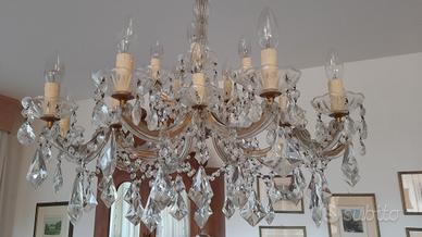Lampadario salotto classico, in stile gocciato, seconda metà del Novecento (500 €). Valutazione eseguita dall'antiquario Castellarin di Udine, visibile sul suo sito nella sezione "C03 – Villa moderna in Cervignano del Friuli. Arredi d’interno".