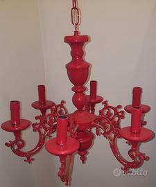 Lampadario classico laccato rosso adatto a qualsiasi tipo di ambiente.