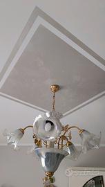 lampadario classico con 5 luci in vetro di murano e particolari in oro - farfalle con cristalli. Lavorato a mano
