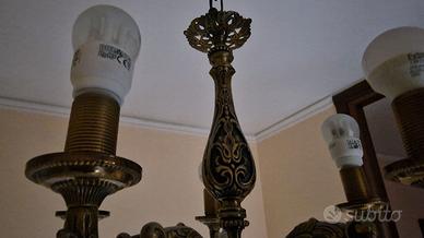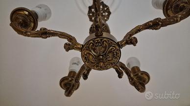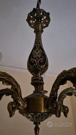 Vendo lampadario classico vintage, ottone/bronzo con raffinati dettagli decorativi.