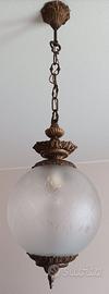 Lampadario da camera in ottone con boccia in vetro. Ottimo stato.