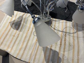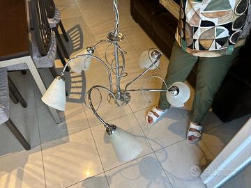 Lampadario in acciaio con 5 punti luce (attacco E27). Molto bello esteticamente e, in base alle lampadine installate, illumina una superficie molto ampia. I 5 punti luce rappresentano dei "fiori" intorno allo stelo centrale.