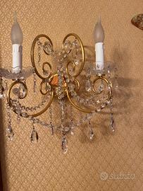 lampadario con applick in swaroski, vetrina oro