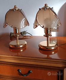 Lampadario da camera da letto con coppia di Abat jour abbinate, vintage, in vetro e struttura in metallo dorato. In ottime condizioni come da foto Altezza Abat jour circa 30 cm. Per ulteriori info non esitate a contattarmi Solo ritiro