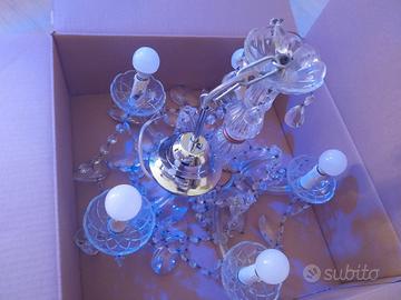 lampadario con cristalli murano, ha due portalampade rotti da una parte ma funziona normalmente tutto. io lo avevo attaccato in camera e quando e al soffitto non si nota che sono rotti, se uno vuole si possono cambiare