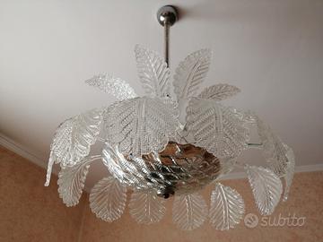 Bellissimo lampadario con foglie d'acanto in vetro di Murano, ottime condizioni. Euro 300. Disponibili anche i ricambi di foglie a 15 Euro l'uno. Telefono 3402412014
