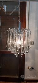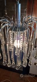 lampadario con gocce in cristallo anni 70 struttura in acciaio cromato, misura diametro cm 35