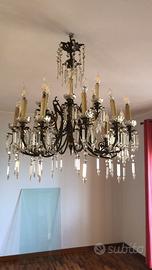 importante lampadario con gocce in vetro/cristallo completo di lampadine