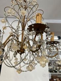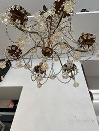 LAMPADARIO CON GOCCE & ROSELLINE IN VETRO DI MURANO LEGGERMENTE DORATE.