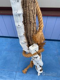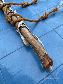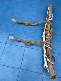 Con questo tronco avvinchiato si é realizzato il lampadario con applicate due corde con all'interno cavi elettrici + attacco standard per lampadine