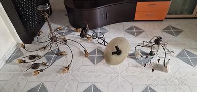 vendo per inutilizzo lampadario in ferro con rose in vetro murano.