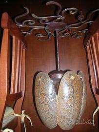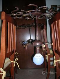 Vendo, causa separazione, meraviglioso lampadario in ferro battuto lavorato a mano. Si tratta di un ferro tornito a mano con 7 foglie (5+2) in vetro di Murano, originali. Eventualmente in omaggio il secondo lampadario (gemello grande) a tre lampade, senza foglie, perfettamente funzionante. Prezzo affare.