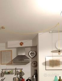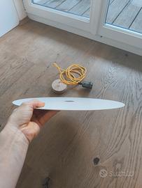 Lampada a sospensione di Creative Cables dal design minimale. Il set è: disco piatto in metallo bianco da 40cm diametro, rosone in legno naturale 9cm diametro e un cavo tessile giallo lungo 2 metri e 70cm