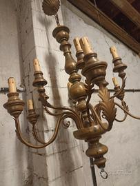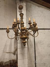 vecchio lampadario anni 70 legno e ottone 6 bracci 12 portalampada ideale per arredamenti tradizionali rustici vintage