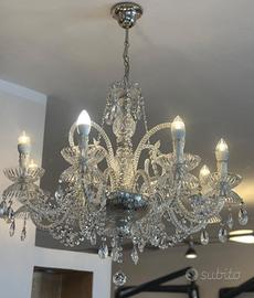 Il lampadario ha qualche anno e qualche cristallo è andato perduto ma è stato conservato in buono stato poiché regolarmente pulito con prodotti specifici.