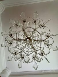 Vendo straordinario lampadario interamente in cristallo con 18 luci, in condizioni impeccabili. Si tratta di un pezzo importante, elegante e raro, composto completamente da cristallo – non solo i pendenti, ma anche tutti i bracci, lavorati in cristallo con anima interna in ottone dorato.