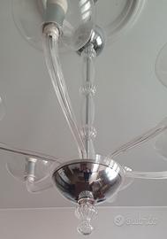 Lampadario di cristalleria murano modello Dogaressa cristallo e cromo 6 luci - Cristallo di murano stile moderno.