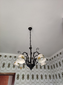 Lampadario cucina in ferro e ceramica 5 luci arte povera.