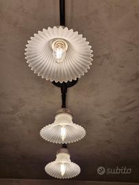 per cambio arredo vendo lampadario con campane in vetro struttura ottone e ceramica preferibile ritiro a mani.