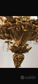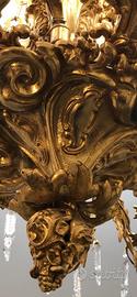 Prestigioso ed elegante lampadario realizzato in bronzo con bagno in oro 1000/1000, interamente cesellato e raspinato a mano, una vera opera d’arte di origine Siciliana della fine del XIX secolo. Si compone di dodici bracci e diciotto luci, stato di conservazione perfetto, misura circa cm 100 h, cm 100 circa diametro, fu acquistato dalla Galleria e Casa D’ Aste Nel’Incanto pagato L. 12.000.000 - nobile famiglia napoletana cede causa trasferimento. € 2000,00 ritiro a Napoli .
