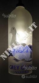 Il lampadario è costituito da una bottiglia in vetro Magnum di Vodka Grey Goose con un unico rosone. Il vetro "nudo" di questa lampada, valorizza tutti gli elementi che la compongono, con sapienti giochi di colore, trasparenze e satinature.